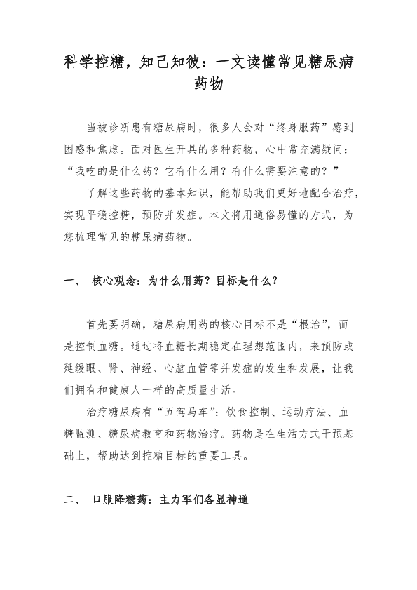科学控糖,知己知彼:一文读懂常见糖尿病药物