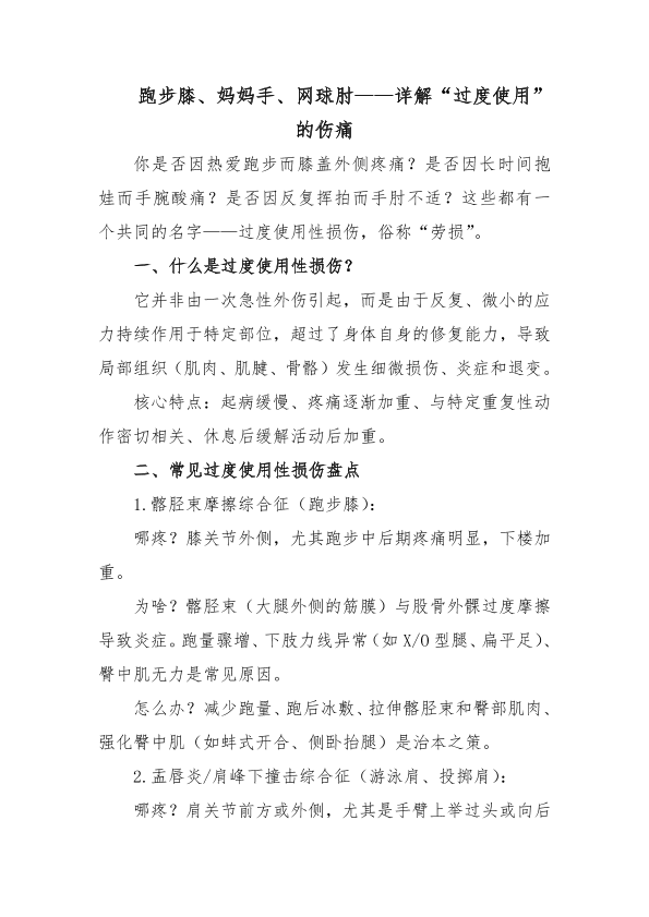 跑步膝、妈妈手、网球肘——详解“过度使用”的伤痛