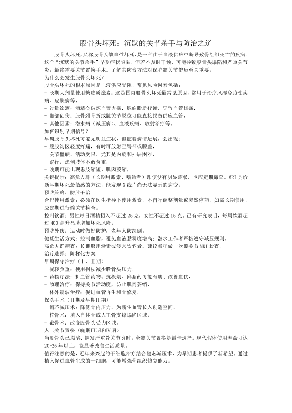 文字类作品+股骨头坏死:沉默的关节杀手与防治之道+米世腾