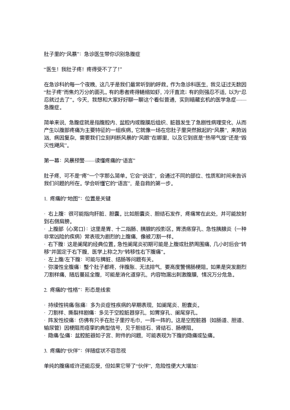肚子里的“风暴”,急诊科医生带你识别急腹症