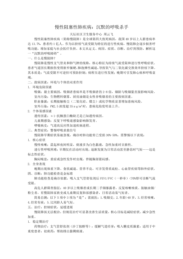 慢性阻塞性肺疾病:沉默的呼吸杀手