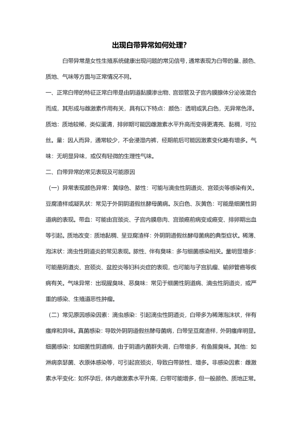 出现白带异常如何处理?