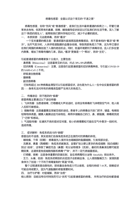 病毒性感冒:全面认识这个常见的“不速之客”