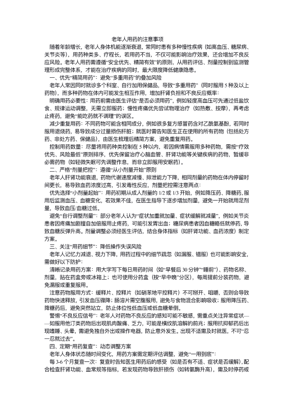 老年人用药的注意事项