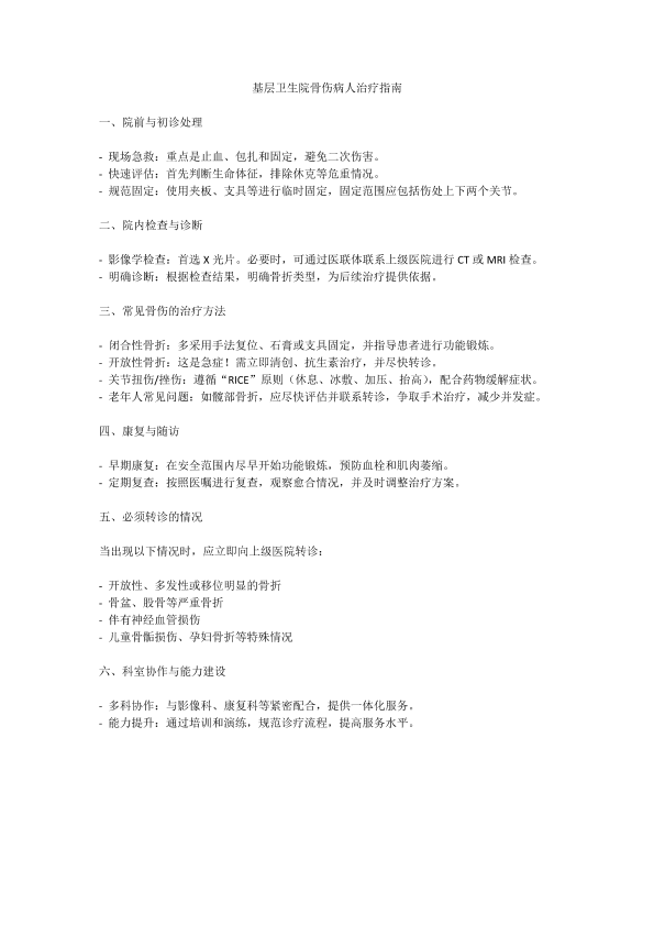 基层卫生院骨伤病人治疗指南