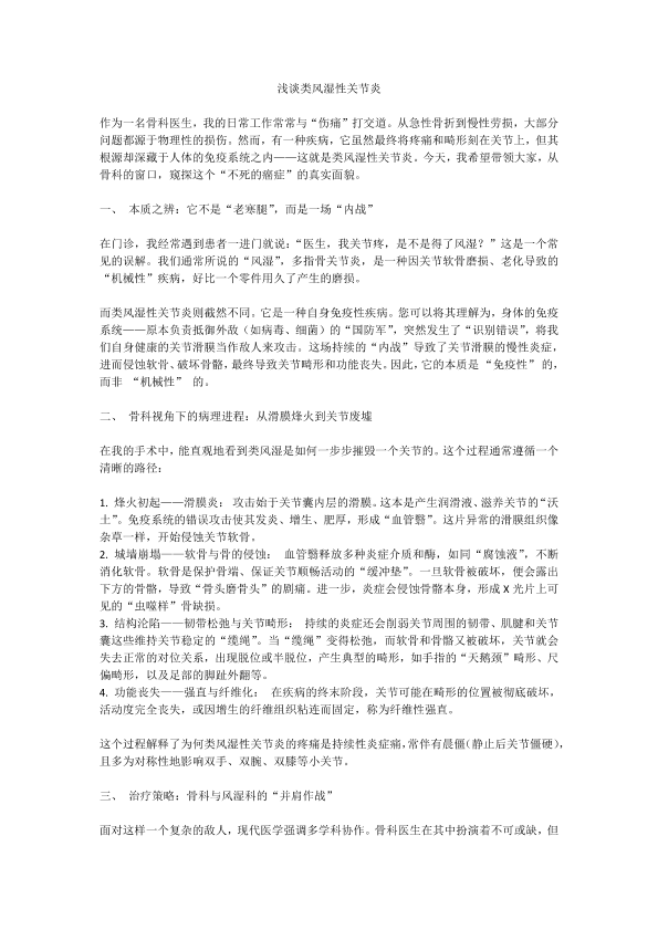 浅谈类风湿性关节炎