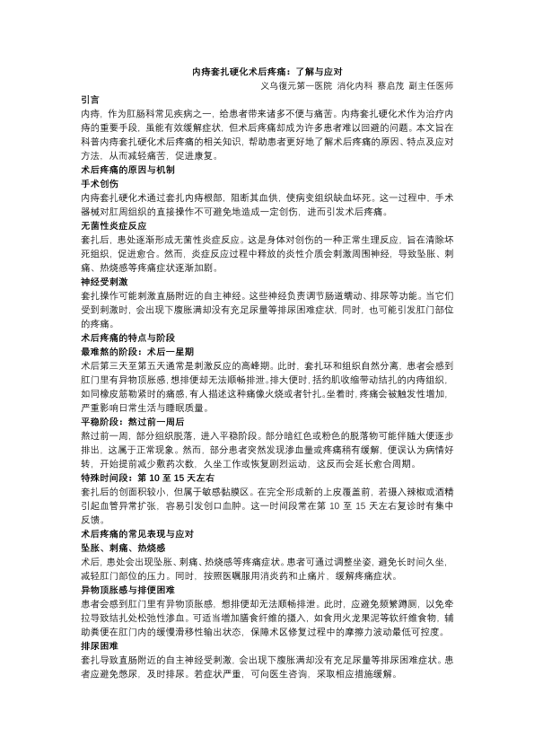 内痔套扎术后疼痛管理科普