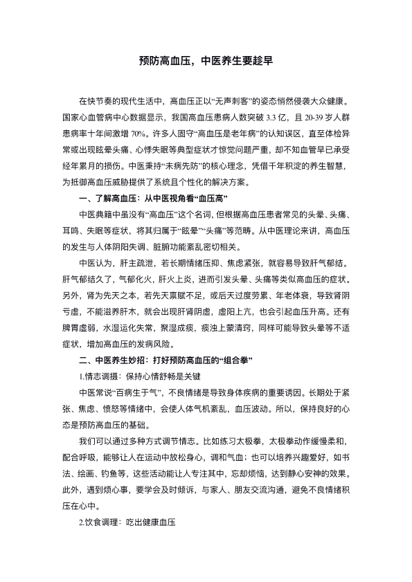 预防高血压,中医养生要趁早