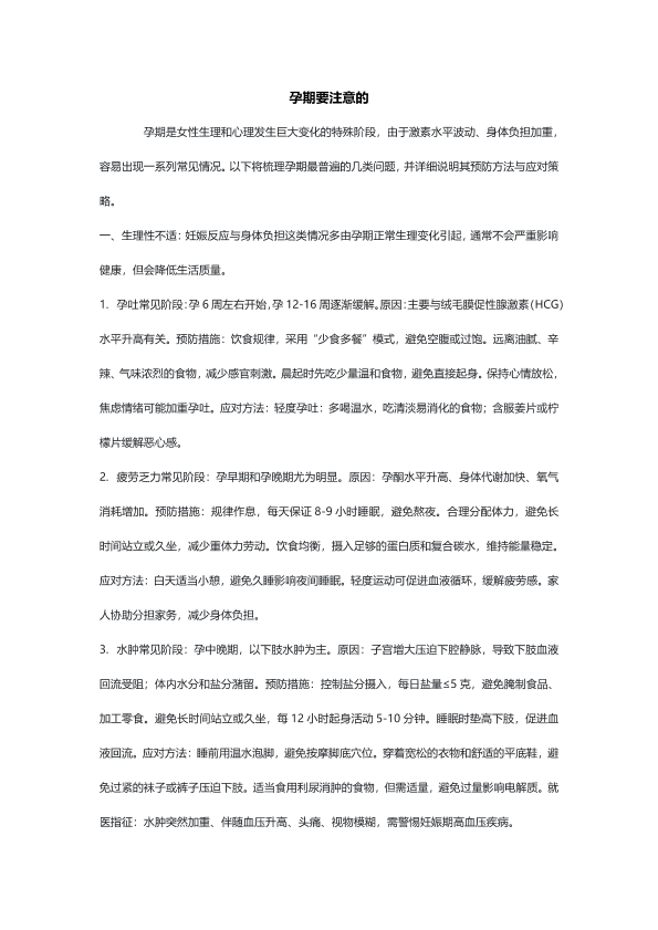 孕期要注意的