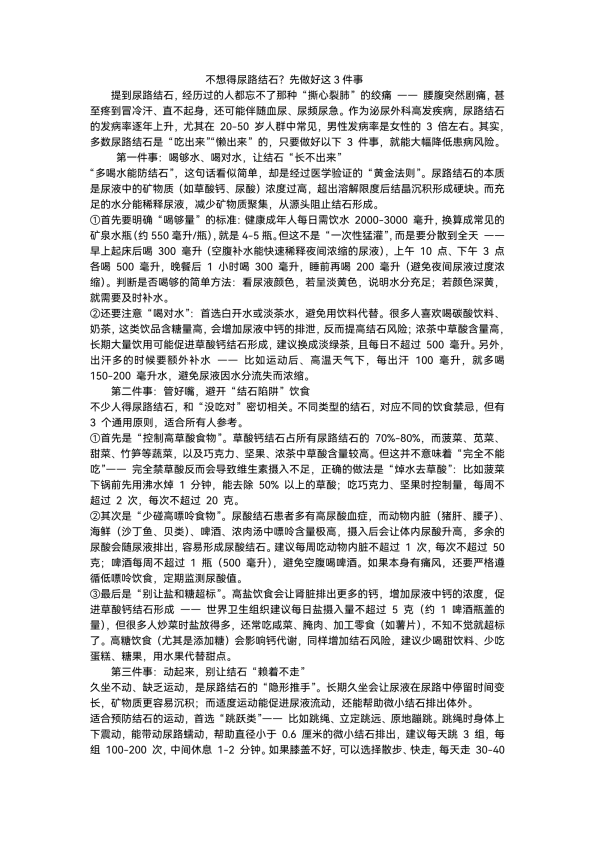 不想得尿路结石,?先做好这 3 件事