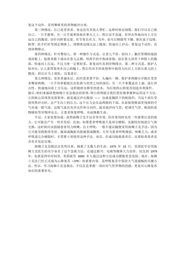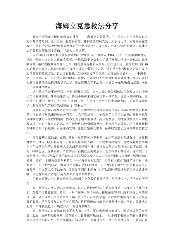 海姆立克急救法知识分享