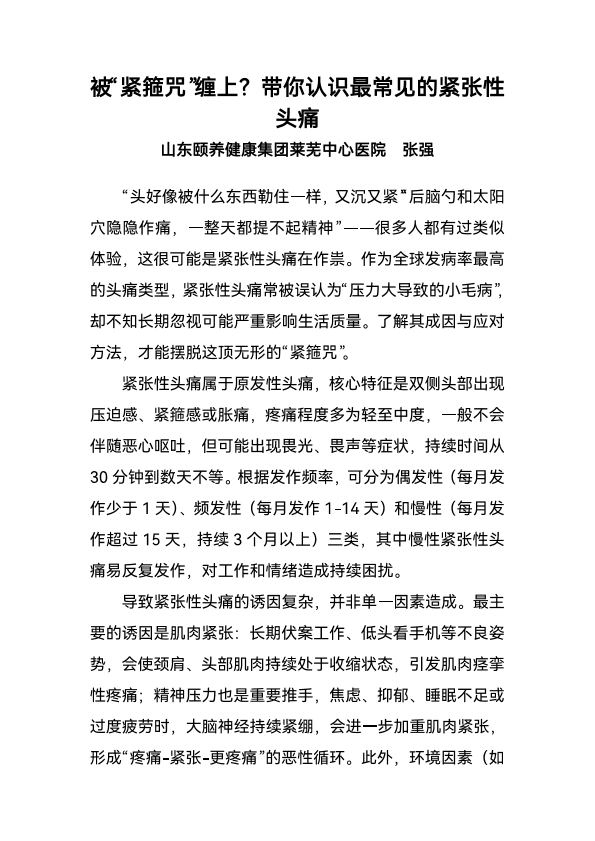 被“紧箍咒”缠上?带你认识最常见的紧张性头痛