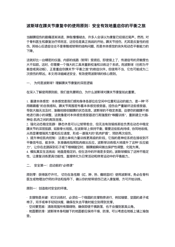 波斯球在踝关节康复中的使用原则:安全有效地重启你的平衡之旅