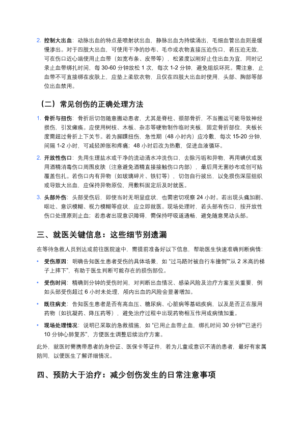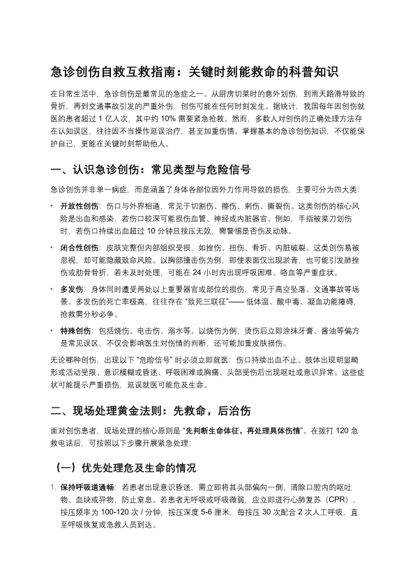 急诊创伤自救互救指南:关键时刻能救命的科普知识