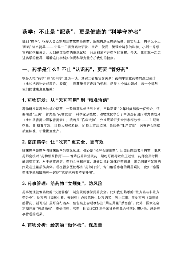 药学:不止是“配药”,更是健康的“科学守护者”