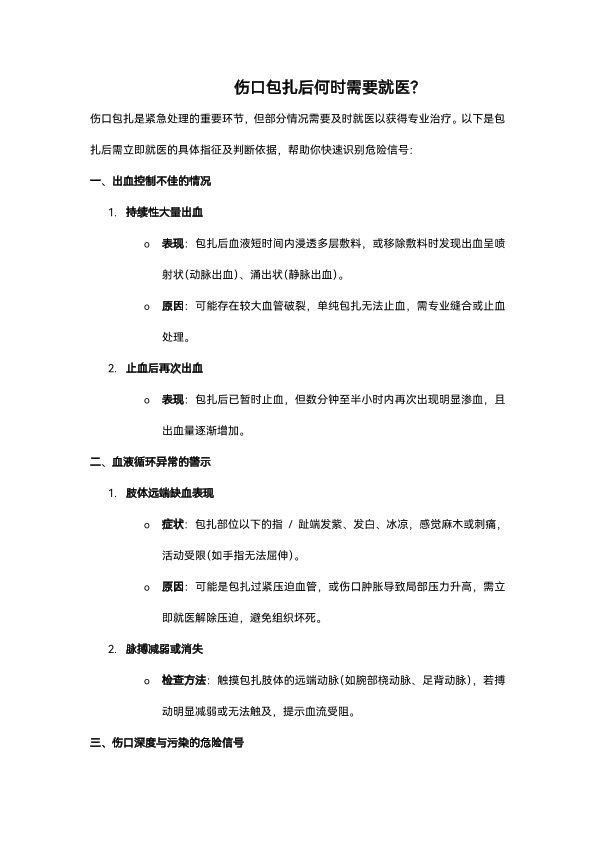伤口包扎后何时需就医