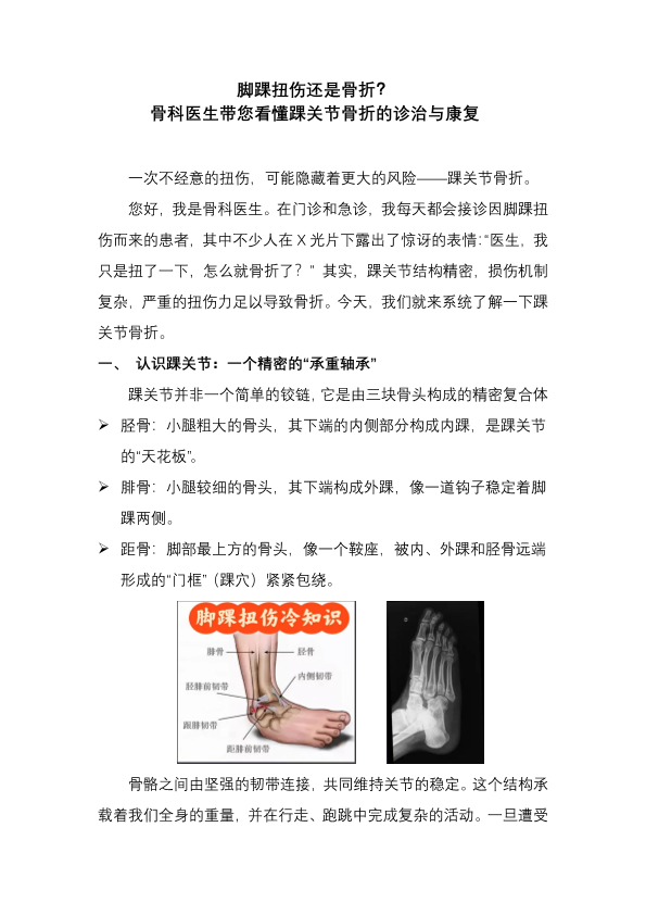 脚踝扭伤还是骨折?骨科医生帮您看懂踝关节骨折的诊治与康复