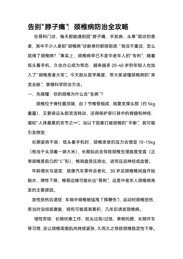 颈椎病:低头族的“隐形杀手”,如何自救?