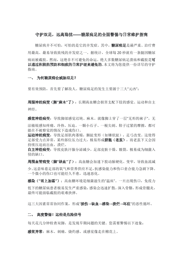 守护双足,远离隐忧—糖尿病足的全面警惕与日常维护指南