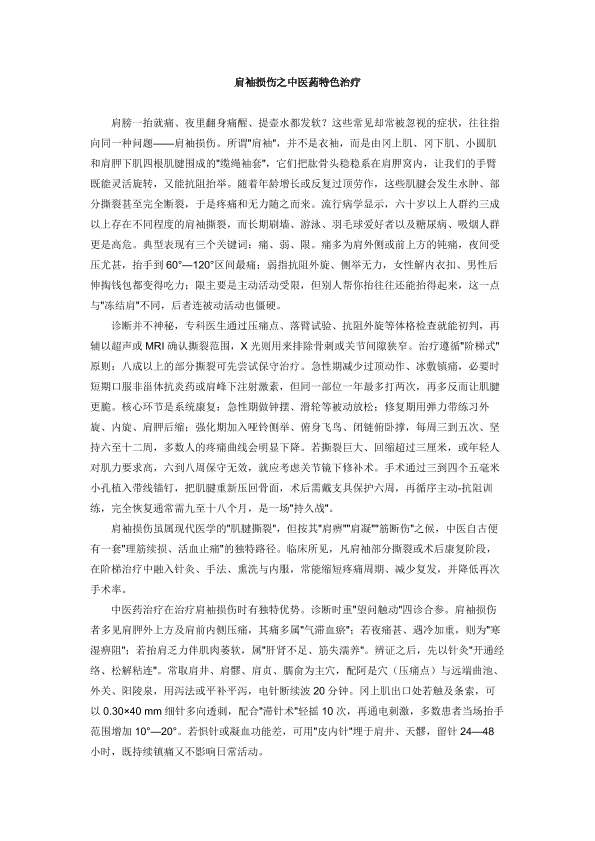 肩袖损伤之中医药特色治疗