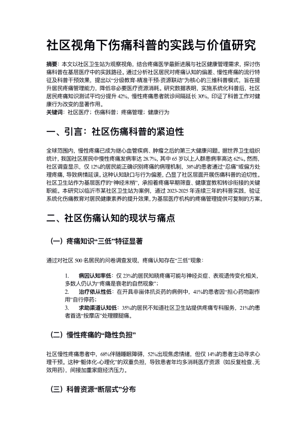 社区视角下伤痛科普的实践与价值