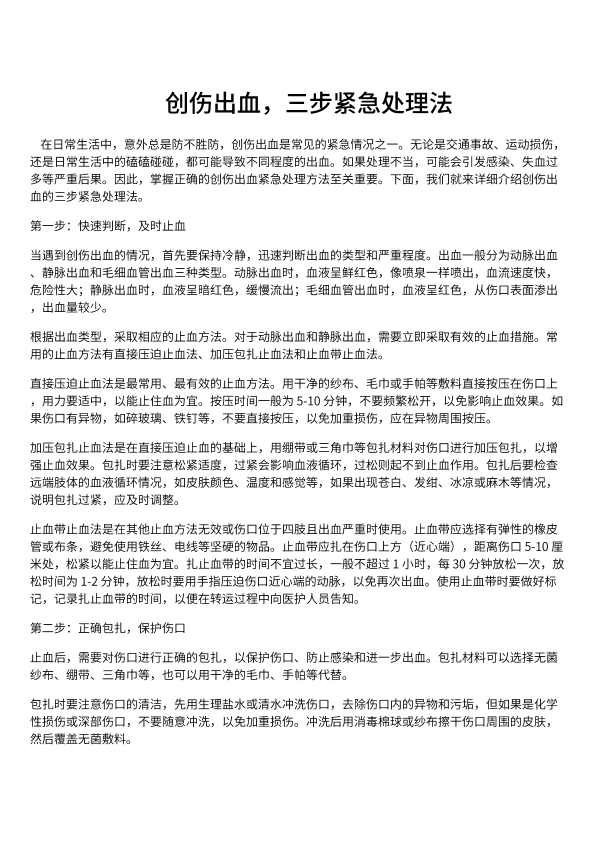 创伤出血,三步紧急处理法