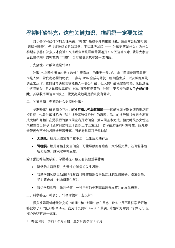孕期叶酸补充:这些关键知识,准妈妈一定要知道
