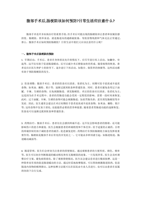 腹部手术后,肠梗阻该如何预防?日常生活应注意什么?