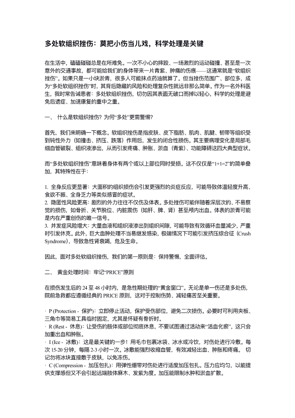 多处软组织挫伤:莫把小伤当儿戏,科学处理是关键