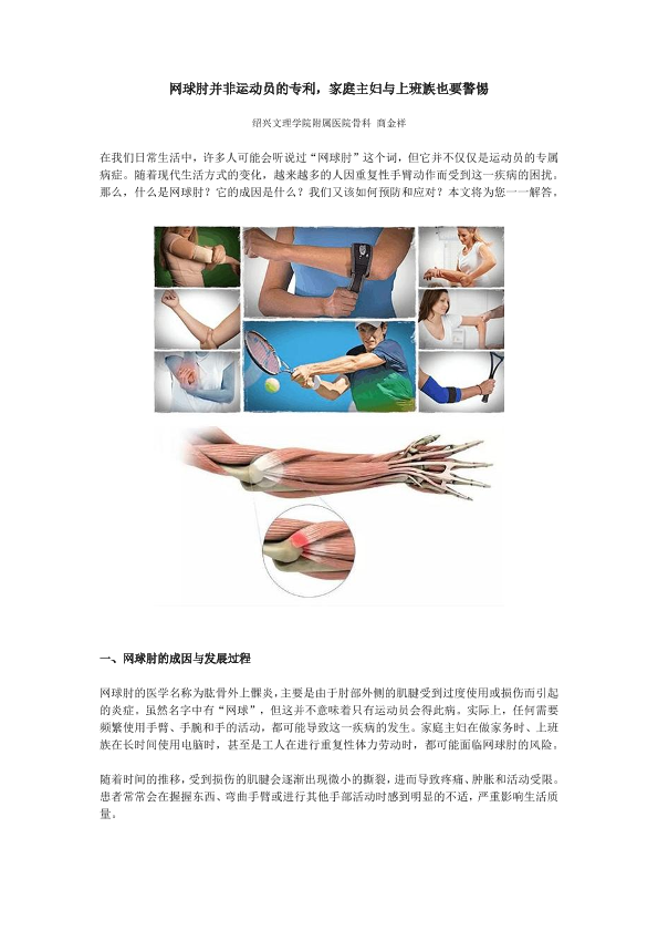 网球肘并非运动员的专利,家庭主妇与上班族也要警惕