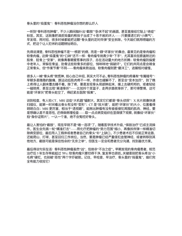 骨头里的“捣蛋鬼”:骨科恶性肿瘤没你想的那么吓人