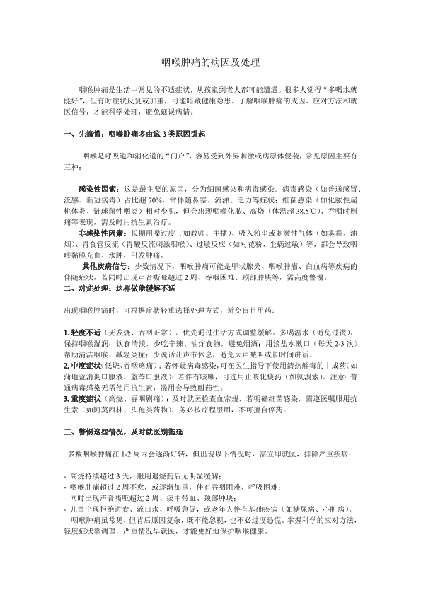 咽喉肿痛的病因与处理