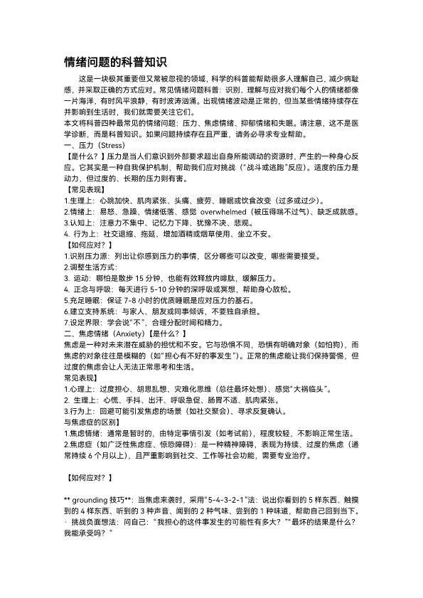情绪问题的科普知识