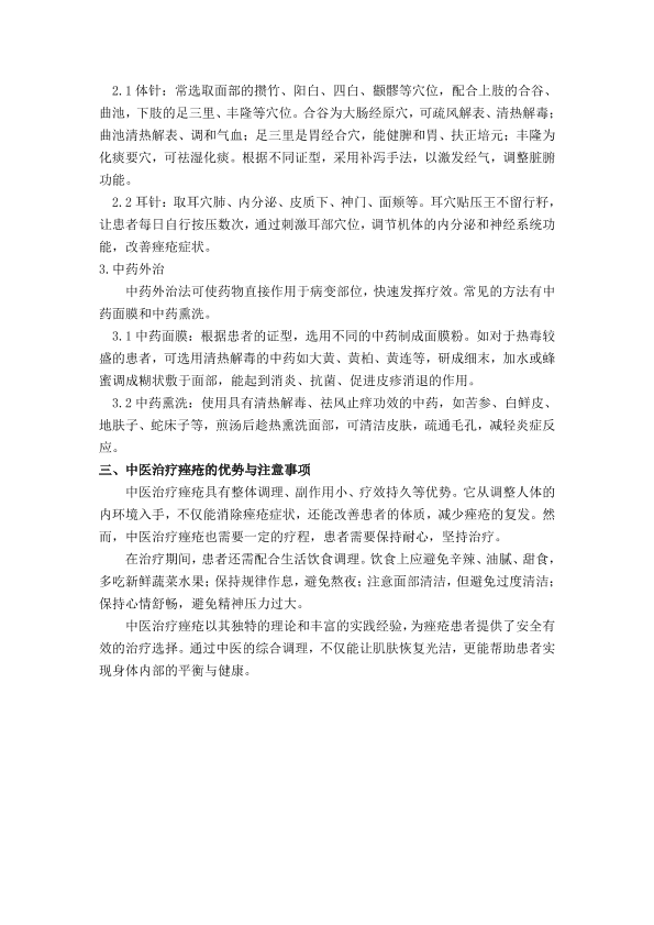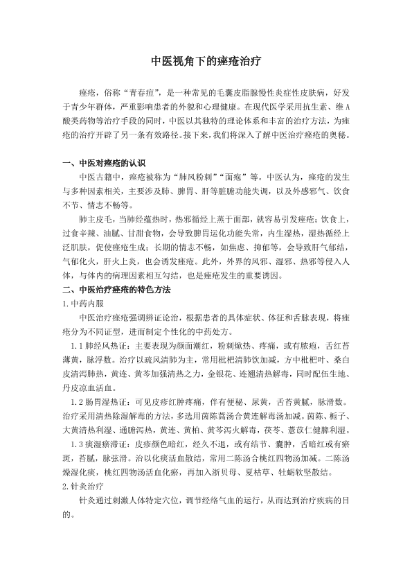 中医视角下的痤疮治疗