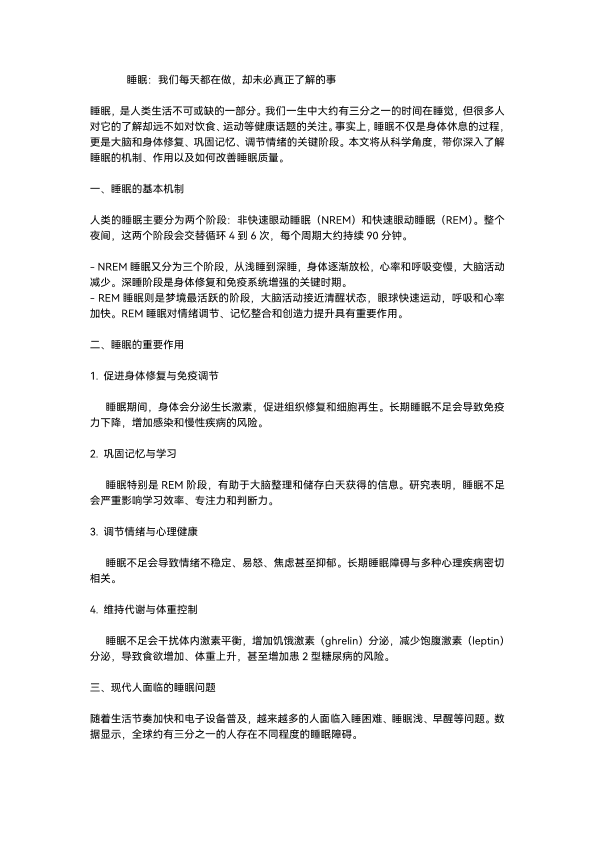 睡眠:我们每天都在做,却未必真正了解的事
