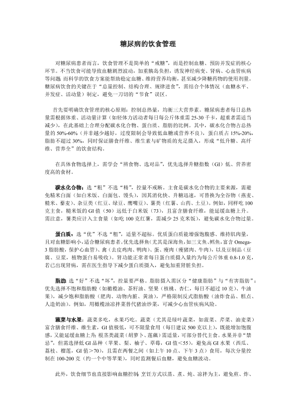 糖尿病的饮食管理