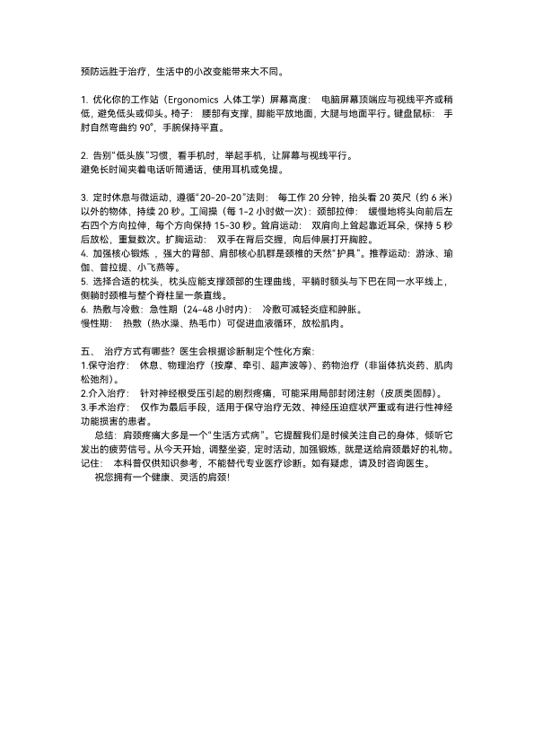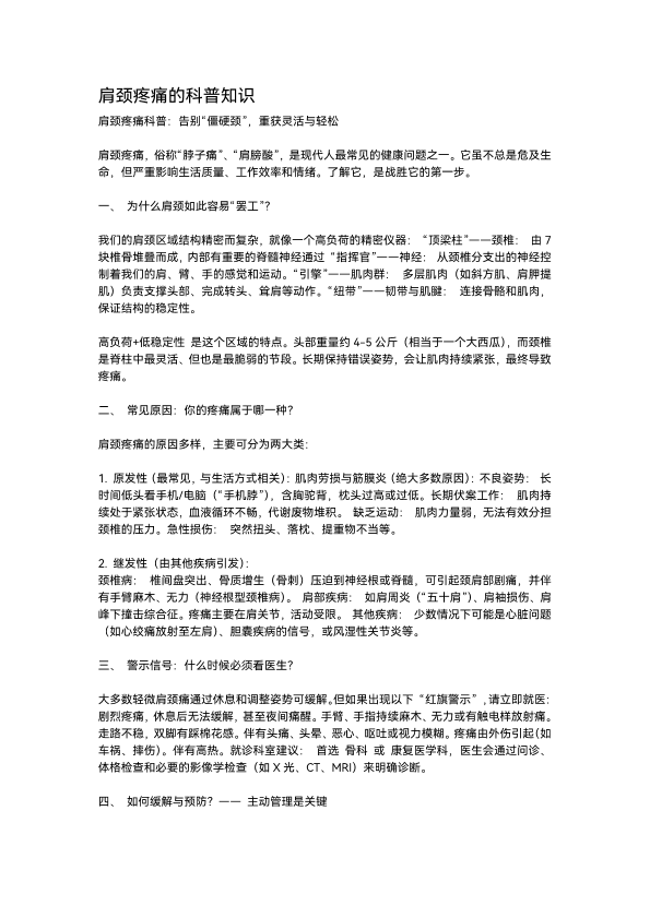 肩颈疼痛的科普知识