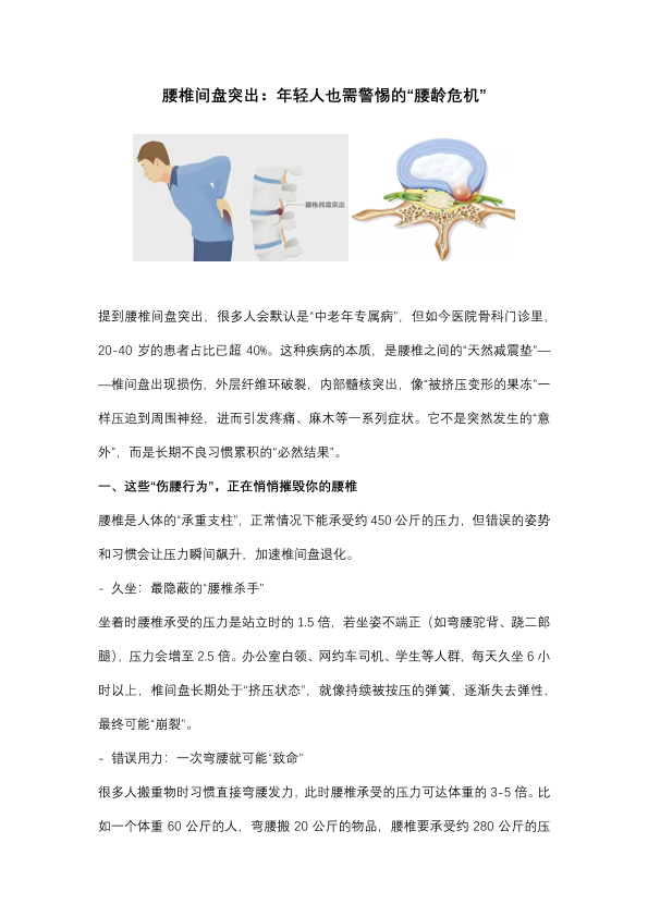 腰椎间盘突出:年轻人也需警惕的“腰龄危机”
