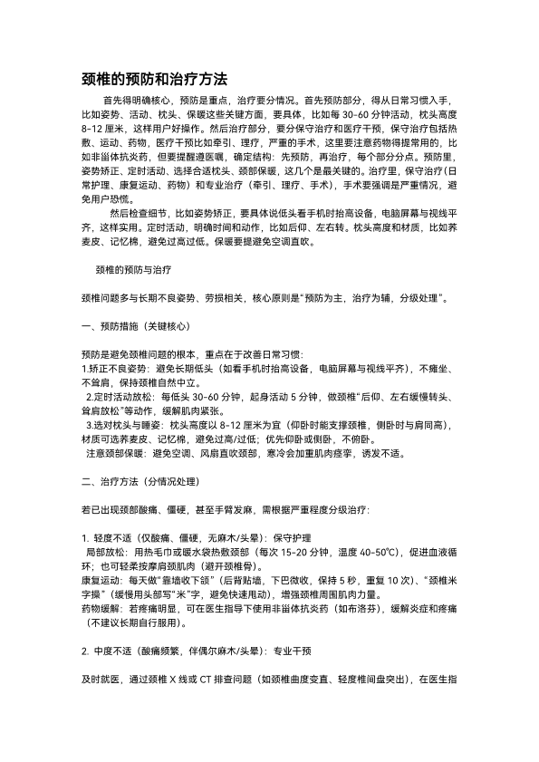 颈椎的预防和治疗方法
