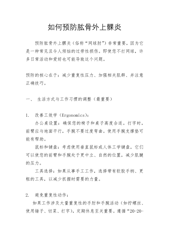 如何预防肱骨外上髁炎