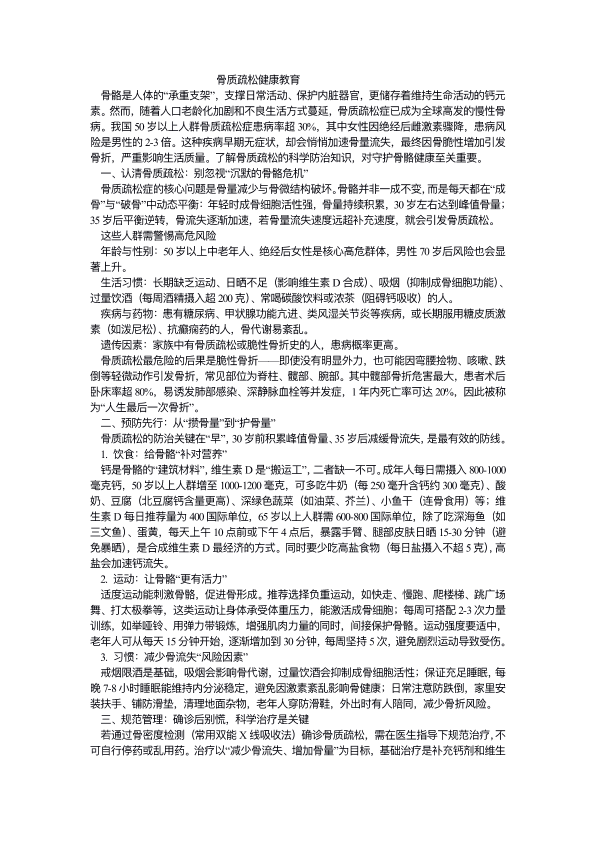 骨质疏松健康教育