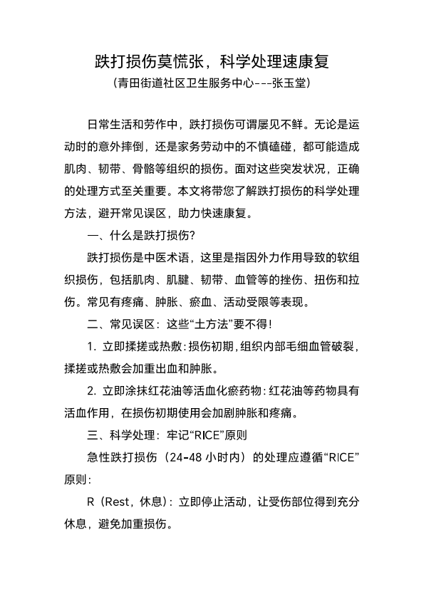跌打损伤莫慌张 科学处理速康复