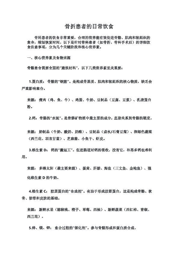 骨折患者的日常饮食