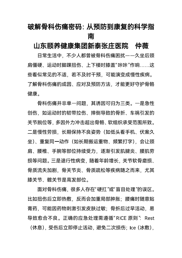 破解骨科伤痛密码:从预防到康复的科学指南