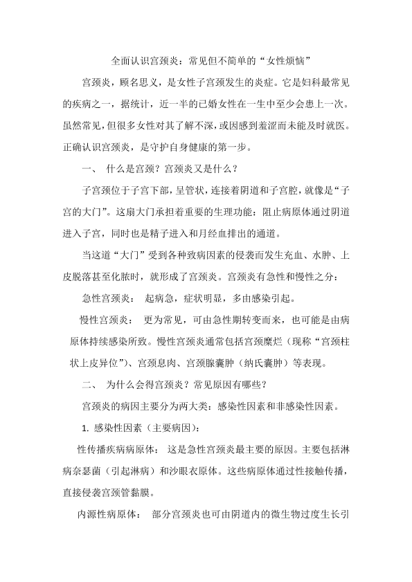 全面认识宫颈炎:常见但不简单的女性烦恼