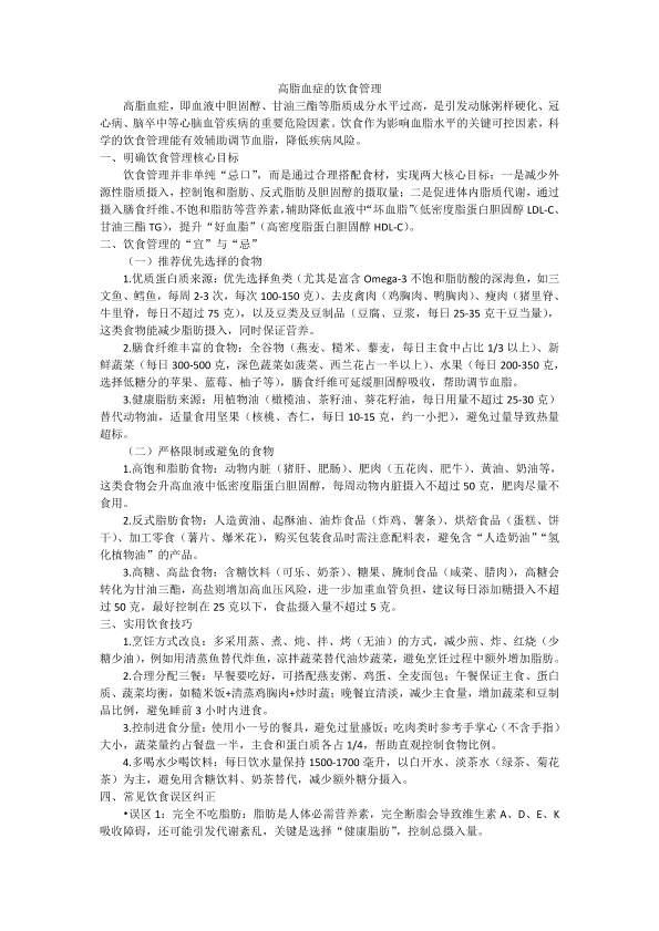 高脂血症的饮食管理