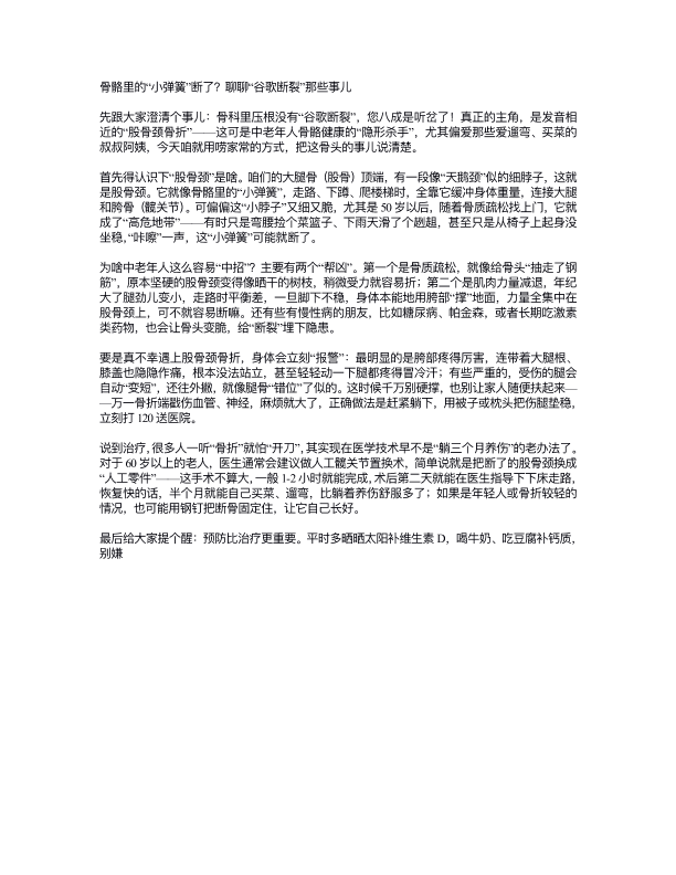 ⻣骼⾥的“⼩弹簧”断了?聊聊“⾕歌断裂”那些事⼉