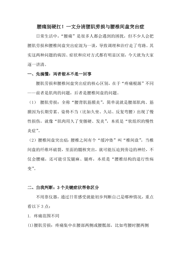 腰痛别硬扛!一文分清腰肌劳损与腰椎间盘突出症