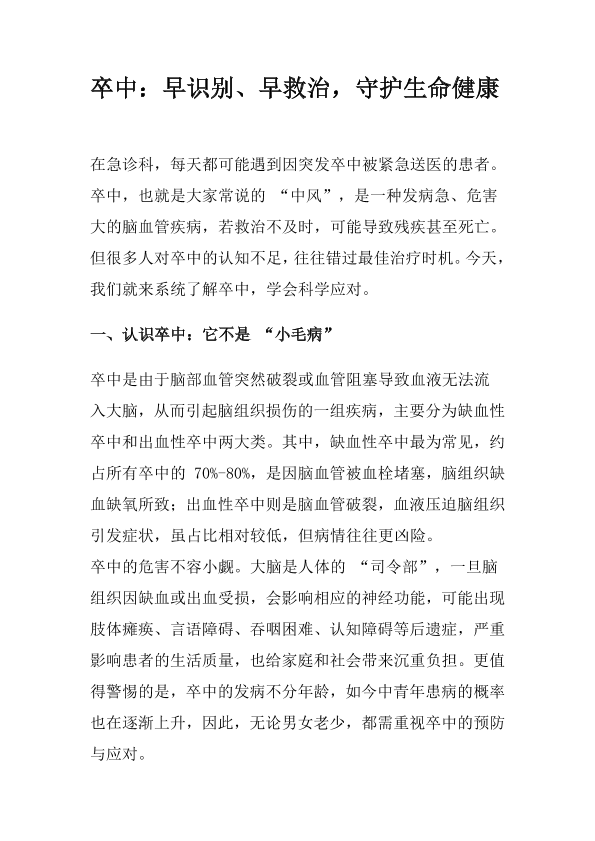 卒中:早识别、早救治,守护生命健康