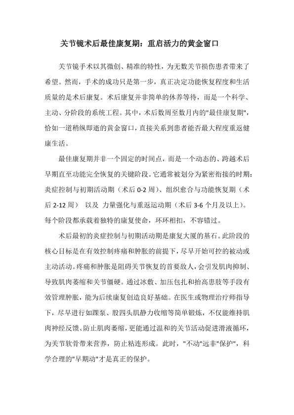 关节镜术后最佳康复期:重启活力的黄金窗口